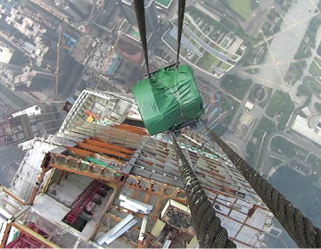 Elevando uma máquina de tração no Guangzhou CTF Finance Centre