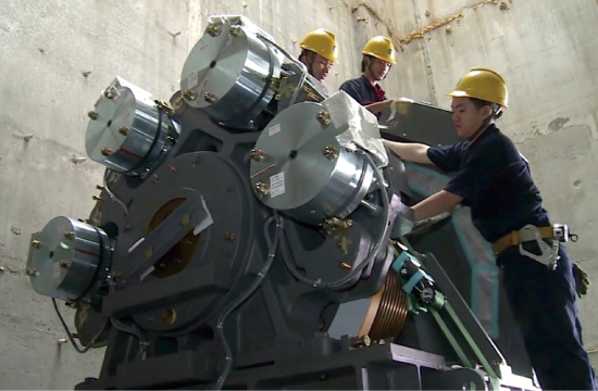 A máquina de tração foi produzida na Mito Works, Hitachi, Ltd. no Japão. A Hitachi alcançou seu objetivo de aumentar a potência necessária para construir o elevador mais rápido do mundo e, ao mesmo tempo, reduzir o tamanho.