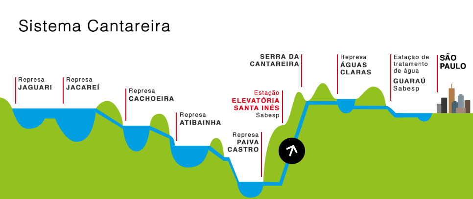 O Sistema Cantareira é composto por seis barragens (Jaguari, Jacareí, Cachoeira, Atibainha, Juqueri e Águas Claras).
